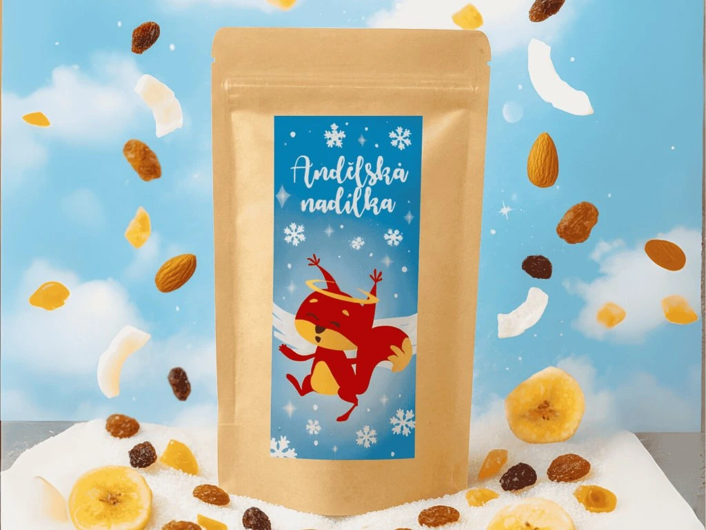 Jedinečný mix oříšků a sušeného ovoce, který s láskou přináší andílek všem hodným dětem. Křupavé arašídy, voňavé rozinky, kokosové plátky, banánové chipsy a kousky papayi tvoří andělsky dobré překvapení do mikulášského balíčku.