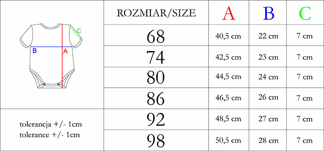 Body s krátkým rukávem, vyrobené ze 100% bavlny, certifikované Oeko-Tex Standard 100 Trustworthy textiles. Oděv je na ramenou a v rozkroku rozepnutý na patentky bez obsahu niklu.