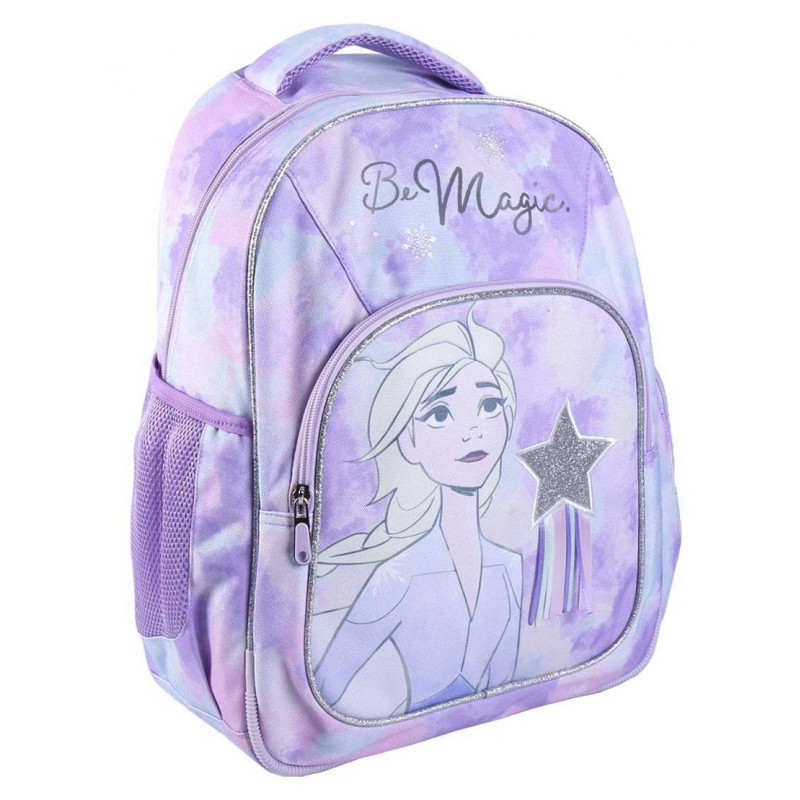 Školní dětský batoh v modro-růžovém provedení s motivem Ledového Království. Funkční pohodlný batoh obsahuje dvě kapsy na zip a na boku jednu síťovanou kapsu na láhev s pitím. Díky vyztuženým, nastavitelným ramenním popruhům a lehce polstrovanými zády je nošení batohu velmi pohodlné. Batoh je vyroben s odolného materiálu s reflexními prvky pro větší bezpečnost.
