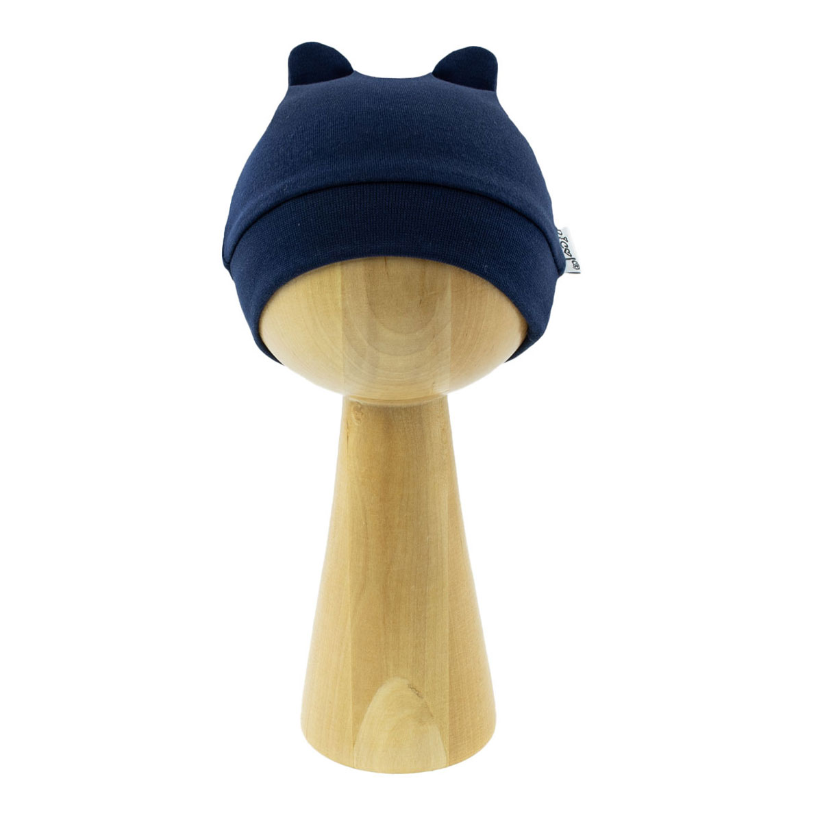 - Dětská čepice, bavlněná s oušky, tmavě modrá, BASIC