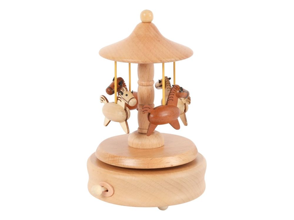 Hrací skříňka - kolotoč s koníky, vyrobená z přírodního dřeva, potěší malé i velké milovnice koní. Dřevěný kolotoč je krásnou hudební hračkou a zároveň originální dekorací nejen do dětského pokoje. Propracovaní koníci se otáčí dokola za doprovodu příjemné melodie. Povrch hrací skříňky je dohladka opracovaný, příjemný na dotek. Kolotoč s koníky je krásným dárkem k jakékoliv příležitosti, potěší děti i dospělé.