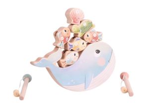 Nová generace dřevěných hraček eliNeli s originálními, ručně malovanými ilustracemi, přináší jedinečný příběh života v oceánu. Soubor her Rybky 4v1 přináší dětem balanční skládání, rybolov, navlékání a nasazování tvarů.