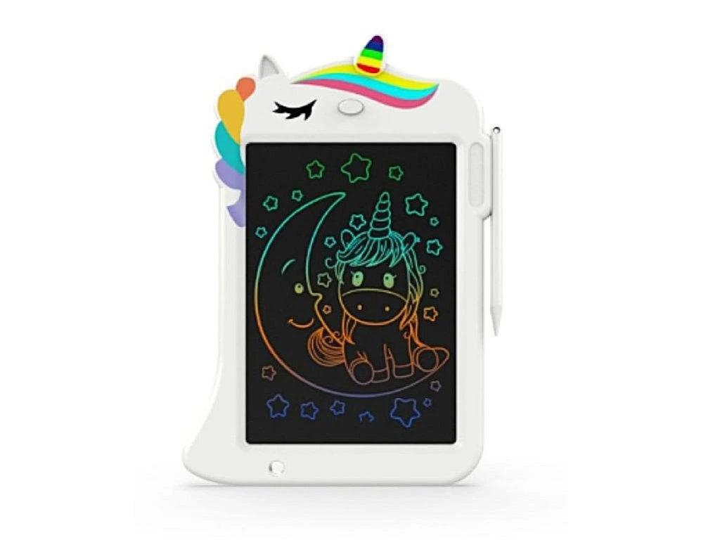 Z prvního tabletu bude nadšené každé dítě toužící po technických vymoženostech. Kreslící tabulka pro děti, v originálním designu, v podobě bílého jednorožce umožní dětem hrát si na tabletu - kreslit a psát stále dokola a dokola. Kreslící tabulka totiž umožňuje kreslit barevná umělecká díla, pochlubit se s nimi, smazat pomocí tlačítka a vytvořit nová. Černá tabulka (tablet) může posloužit i k výuce, k prvnímu seznamování s tvary, písmenky nebo číslicemi. Při hře s tímto tabletem děti rozvíjí svou fantazii a kreativitu, učí se novým znalostem (za pomoci rodičů se seznamují s abecedou, čísly a počty, geometrickými tvary).