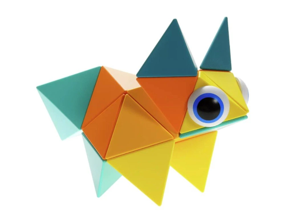 Magnetická stavebnice nabízí 38 dílů ve veselých barvách. V sadě najdete očka, velké, střední a malé trojúhelníky, se kterými postavíte rozmanité 3D modely. Díky pevnému ABS plastu a spolehlivému magnetickému spojení se stavebnice snadno skládá, drží tvar a vydrží i časté používání. Je to ideální kreativní hračka, se kterou může strávit příjemný společný čas celá rodina.