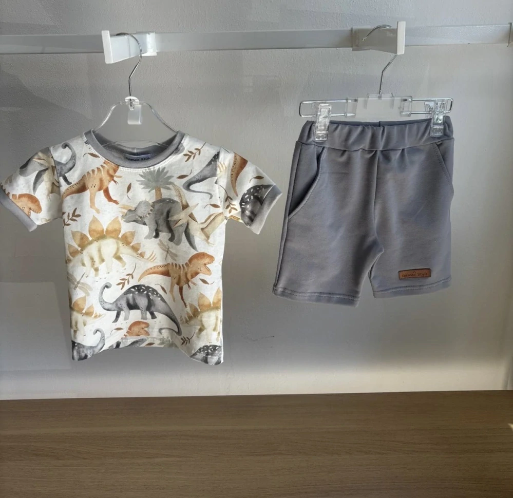 Gamex souprava dinosauři tričko a kraťasy šedé, vel. 110