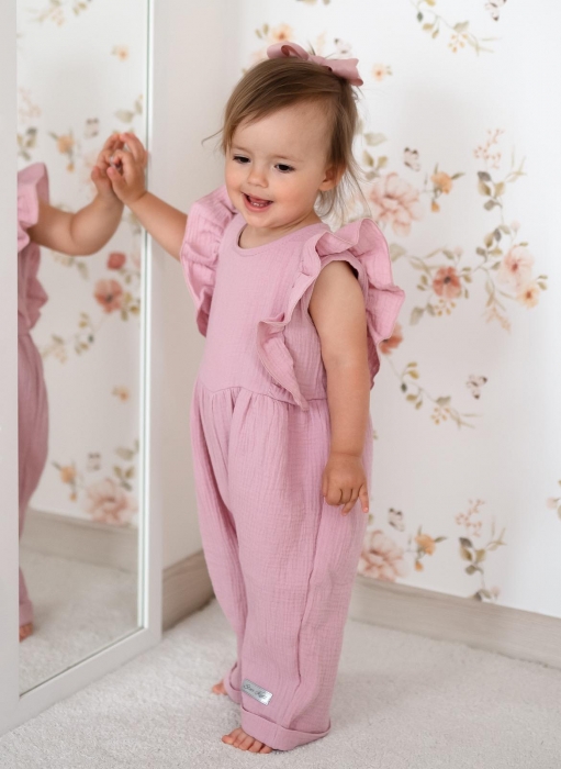 Letní mušelínový overálek pro holčičky s volánkem Star - starorůžová, vel. 104