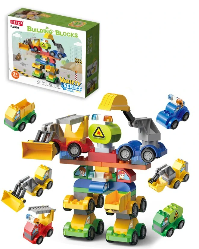 Tato stavebnice s velkými kostkami je ideální pro děti od 3 let a nabízí nekonečné možnosti zábavy. Obsahuje 6 různých aut – policejní vůz, náklaďák, bagr, buldozer, hasičské auto a cisternu. Z aut si děti mohou poskládat velkého robota-autobota, který je stejně jako auta, ze kterých je postaveným, pojízdný. Sada obsahuje celkem 57 dílků, které zaručují hodiny hraní a objevování nových scénářů.