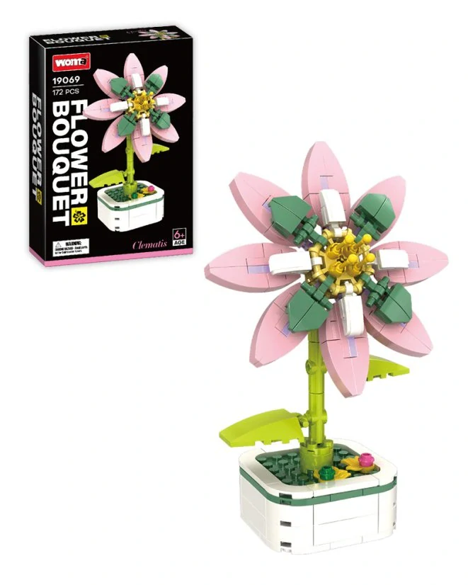 - Woma Stavebnice květina s podstavcem, růžový Clematis (plamének), 172 dílků