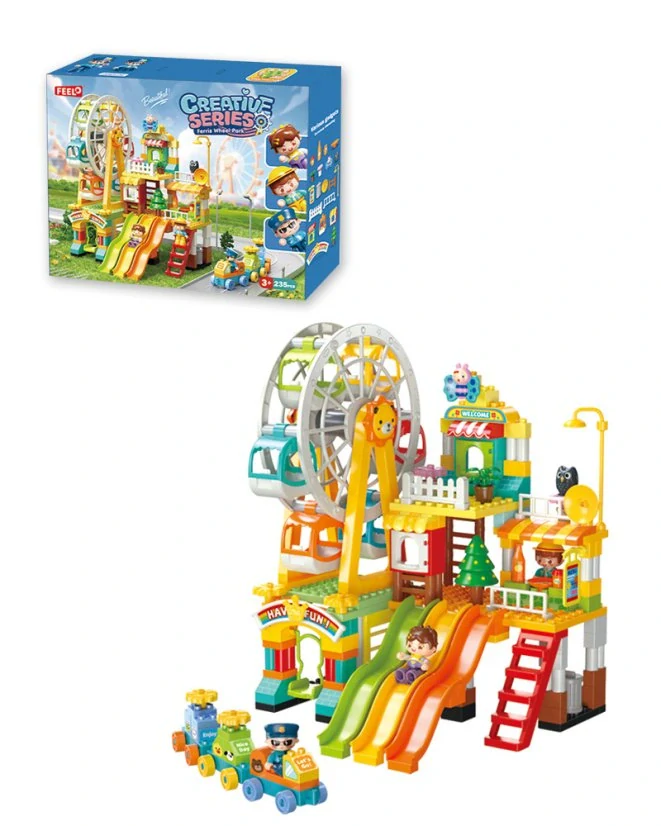 - Stavebnice velký zábavní park s ruským kolem, klouzačkami, vláčkem a figurkami, 235 dílků, velké kostky pro děti od 3 let