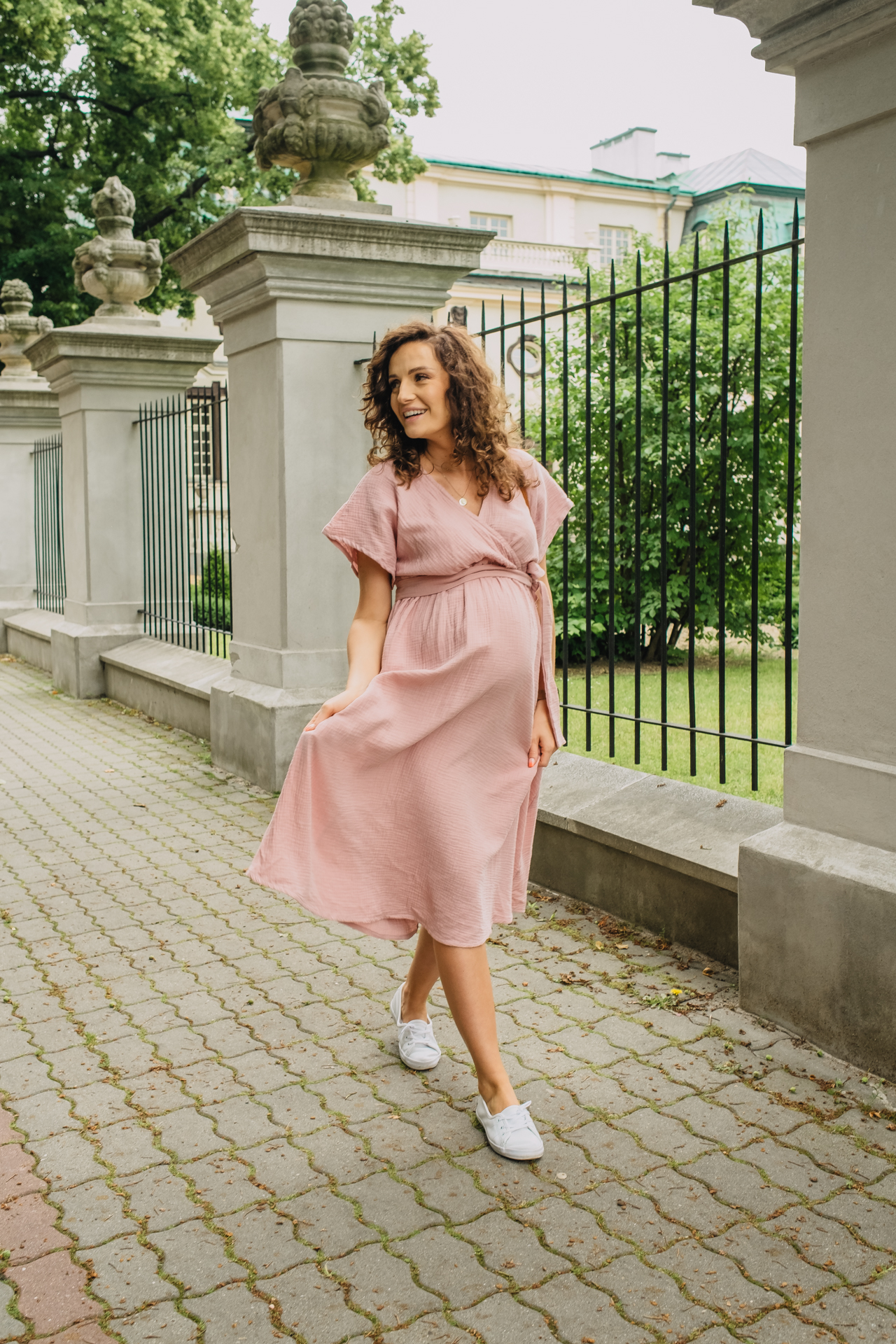 Těhotenské a kojící šaty Sammy jsou perfektní volbou pro letní dny. Je vyroben z bavlněného mušelínu a je vzdušný a pohodlný. Motýlí ramena a výstřih pod poprsím dodávají lehkost. Ideální pro kojící ženy. Těhotenské šaty Sammy jsou elegantní a praktickou volbou pro každou ženu!